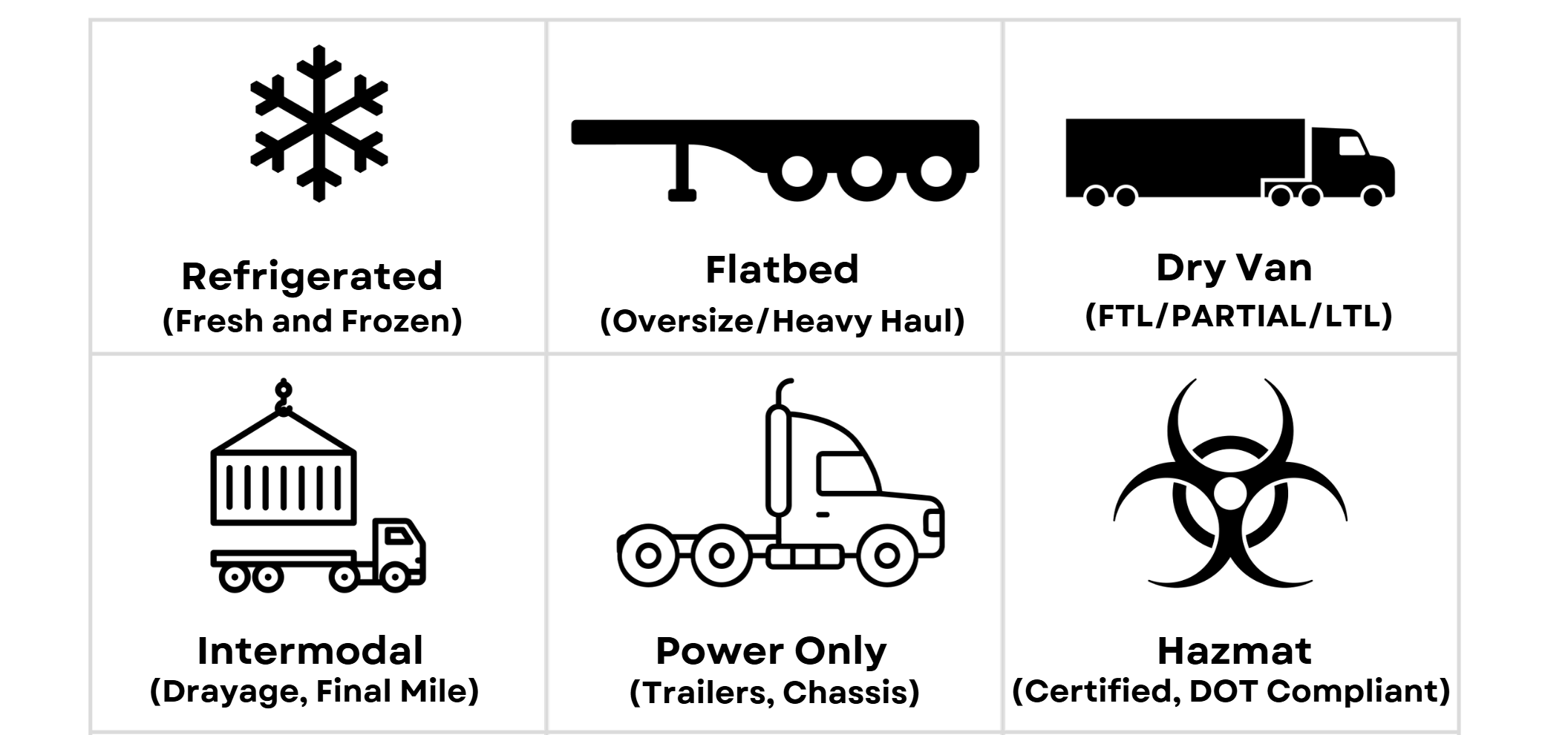 Full-service logistics solutions — Dry Van, Reefer, Flatbed, Hazmat, Power Only, LTL/FTL/Partial, Warehousing — delivered with reliability and purpose.